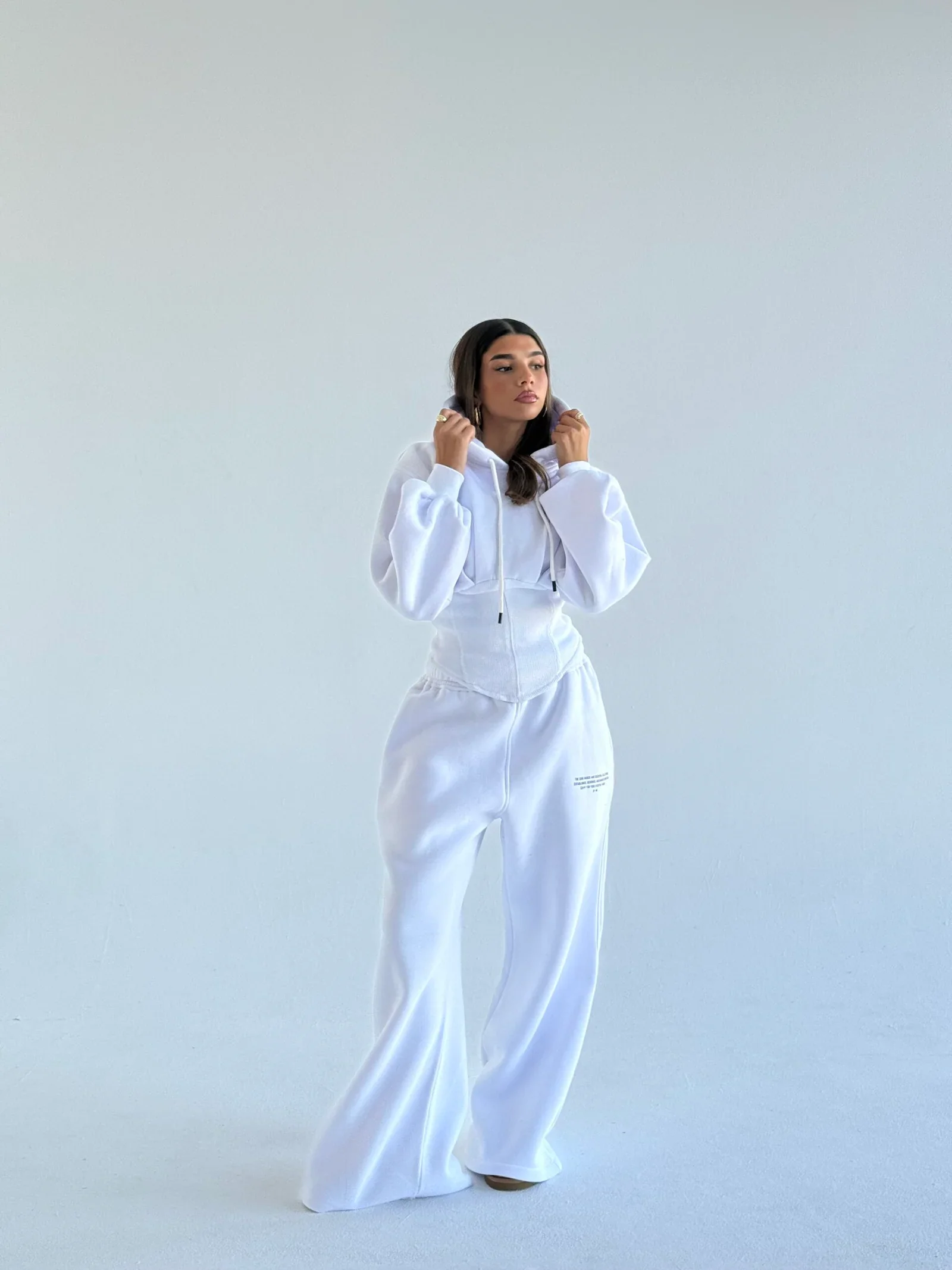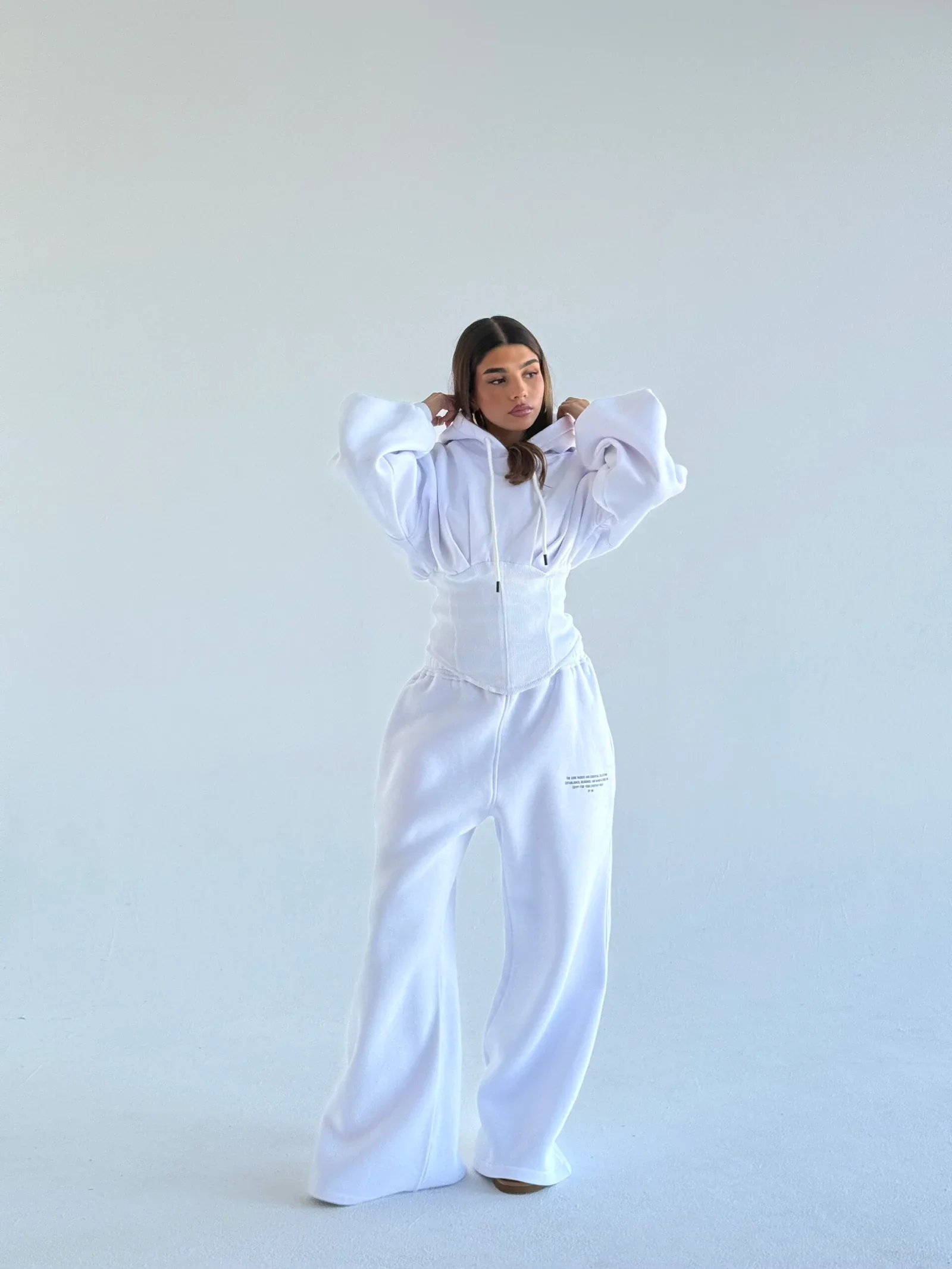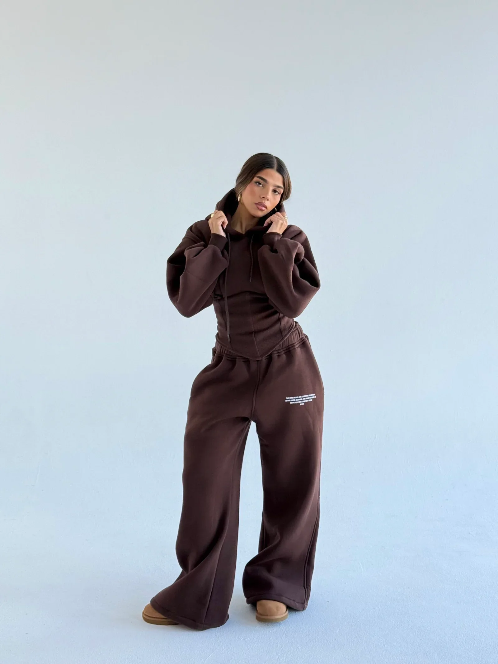 “The waist is snatched but never tight — the hoodie stays oversized and insanely comfortable.”