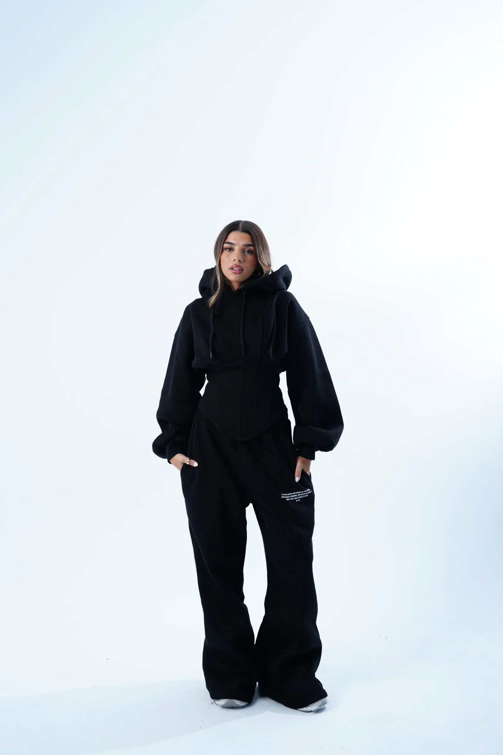 I was honestly worried this would be tight or uncomfortable because of the corset part, but it’s the opposite. The waist is snatched without feeling restrictive at all. The hoodie itself is still oversized and slouchy, which I love. It gives shape without squeezing you. I’m usually picky with fit and this one surprised me in the best way.